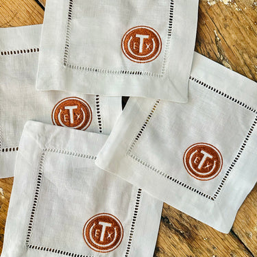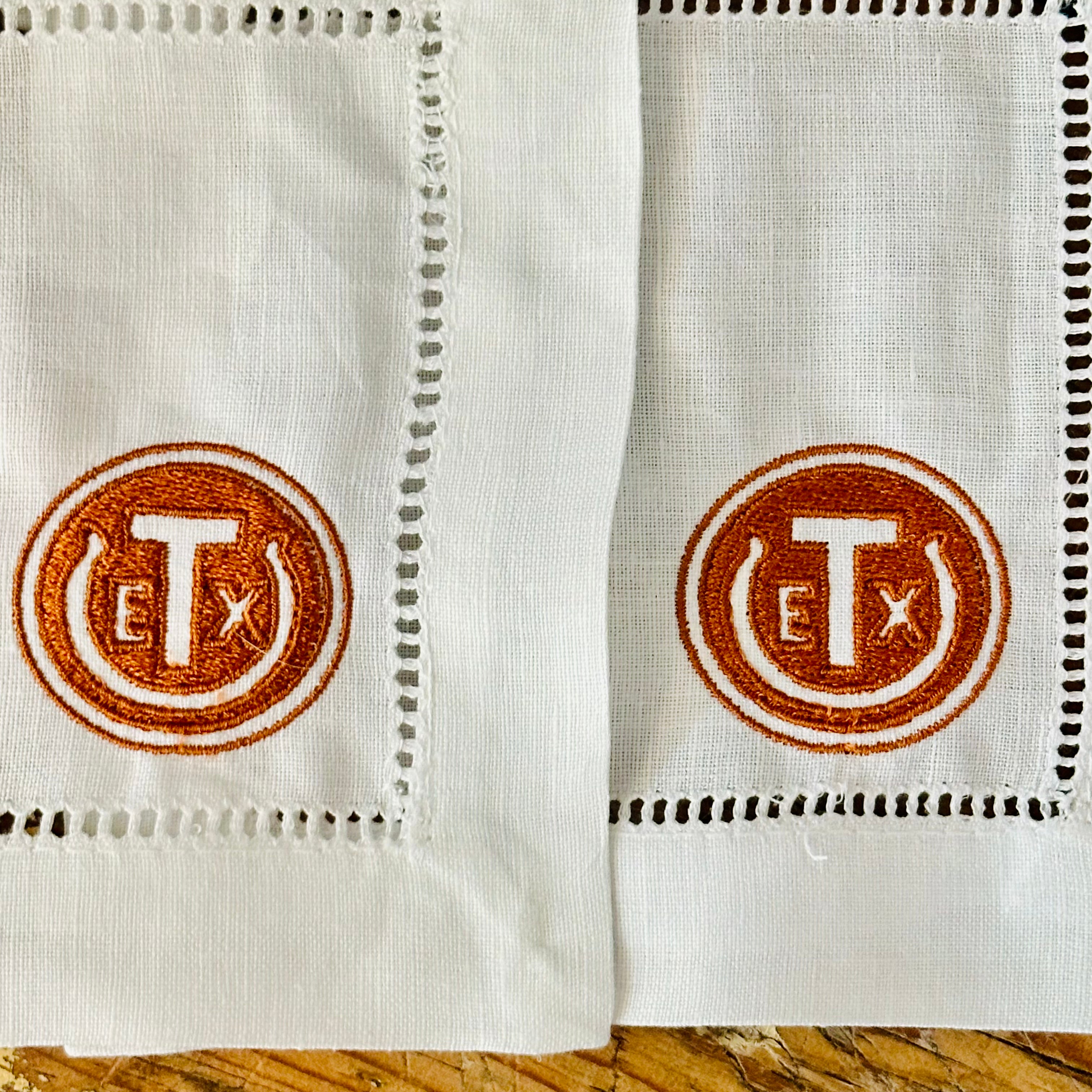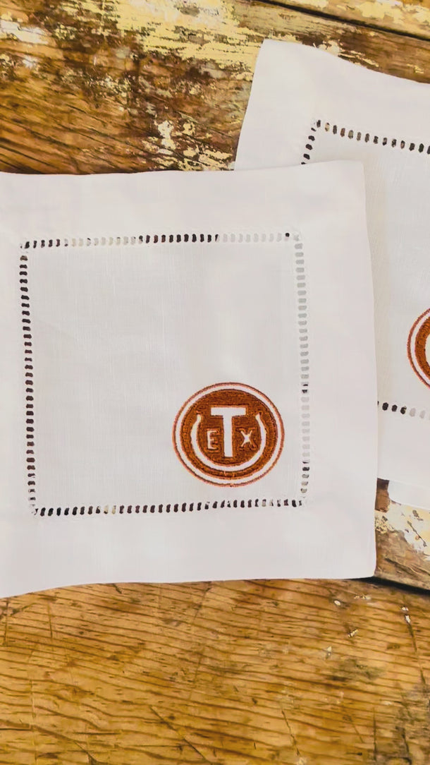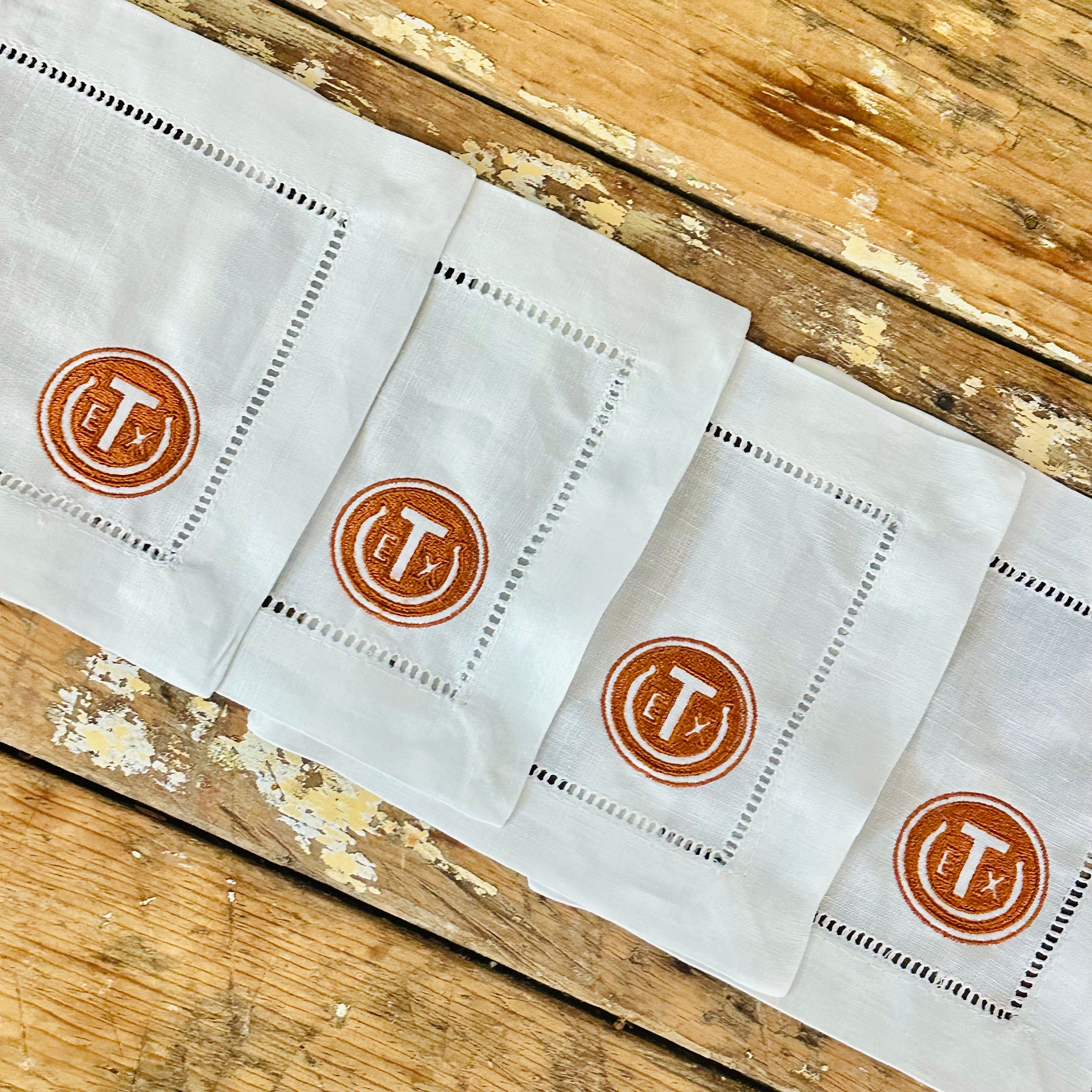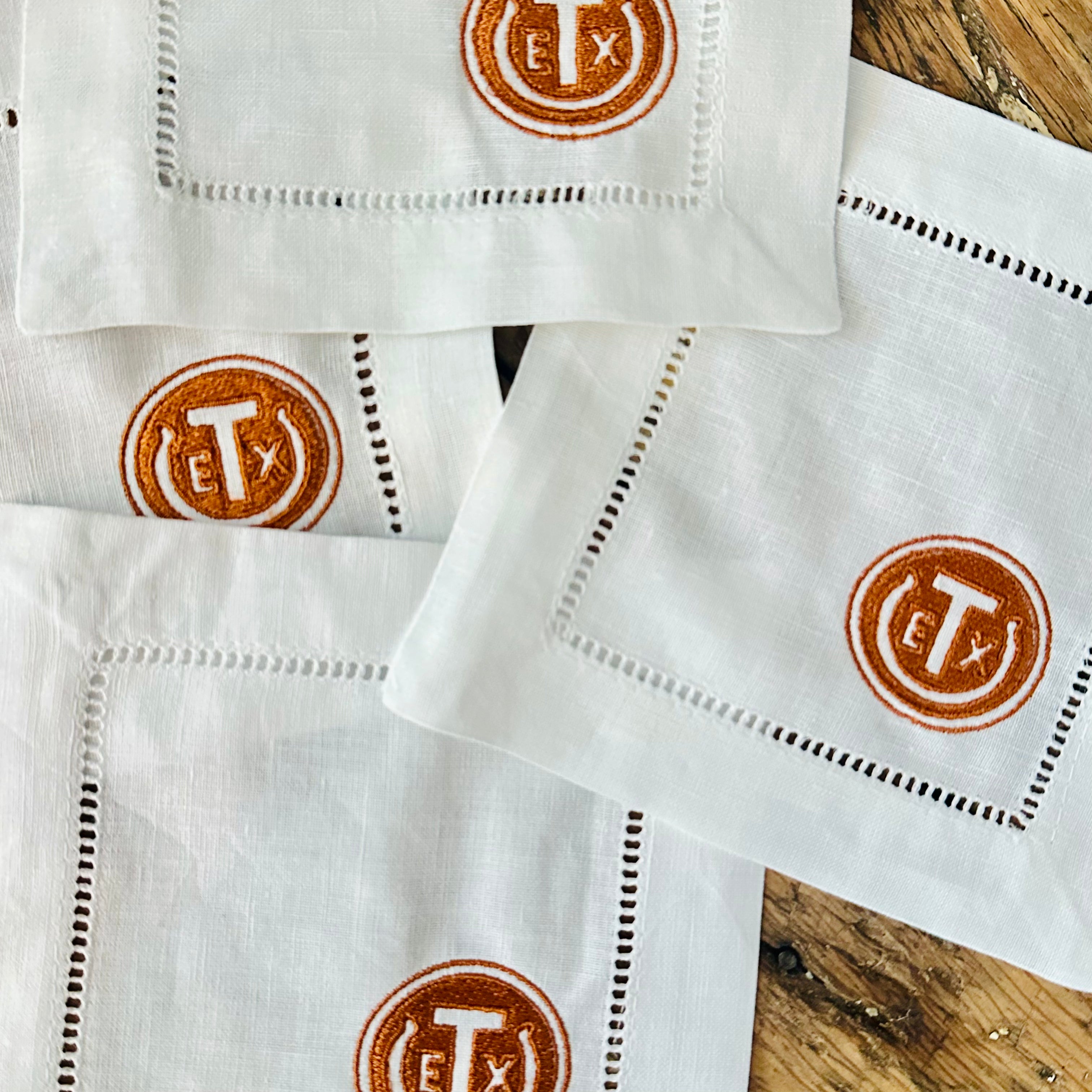 🧡 Texas Exes Embroidered Cocktail Napkins – Set of 4 (6” x 6”)