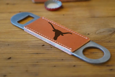 Meet your new go-to bottle opener, wrapped in full-grain leather and stamped with the iconic UT Longhorn logo. Crafted in the USA from premium vegetable-tanned leather and durable stainless steel, this opener is as tough as it is stylish. Slim enough to slip into your pocket and sharp enough to steal the show, it’s perfect for tailgates, parties, or as a gift for any Texas fan who appreciates functional craftsmanship.