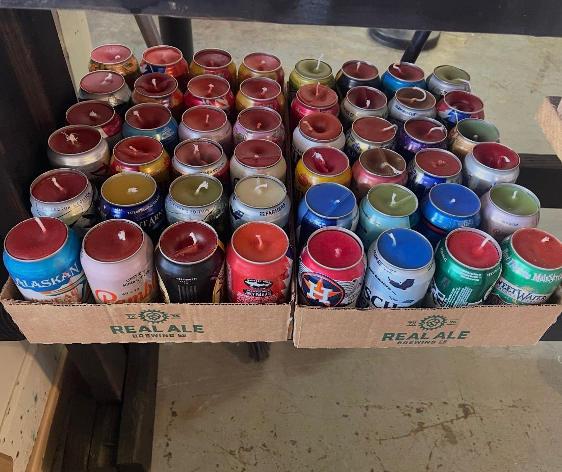 Our Beer Can Candles give your favorite brews a second life. Each candle is hand-poured into a recycled beer can, creating a unique blend of rugged character and cozy ambiance. Perfect for game rooms, man caves, patios, and gift-giving, these candles are a fun conversation piece with real Texas personality.