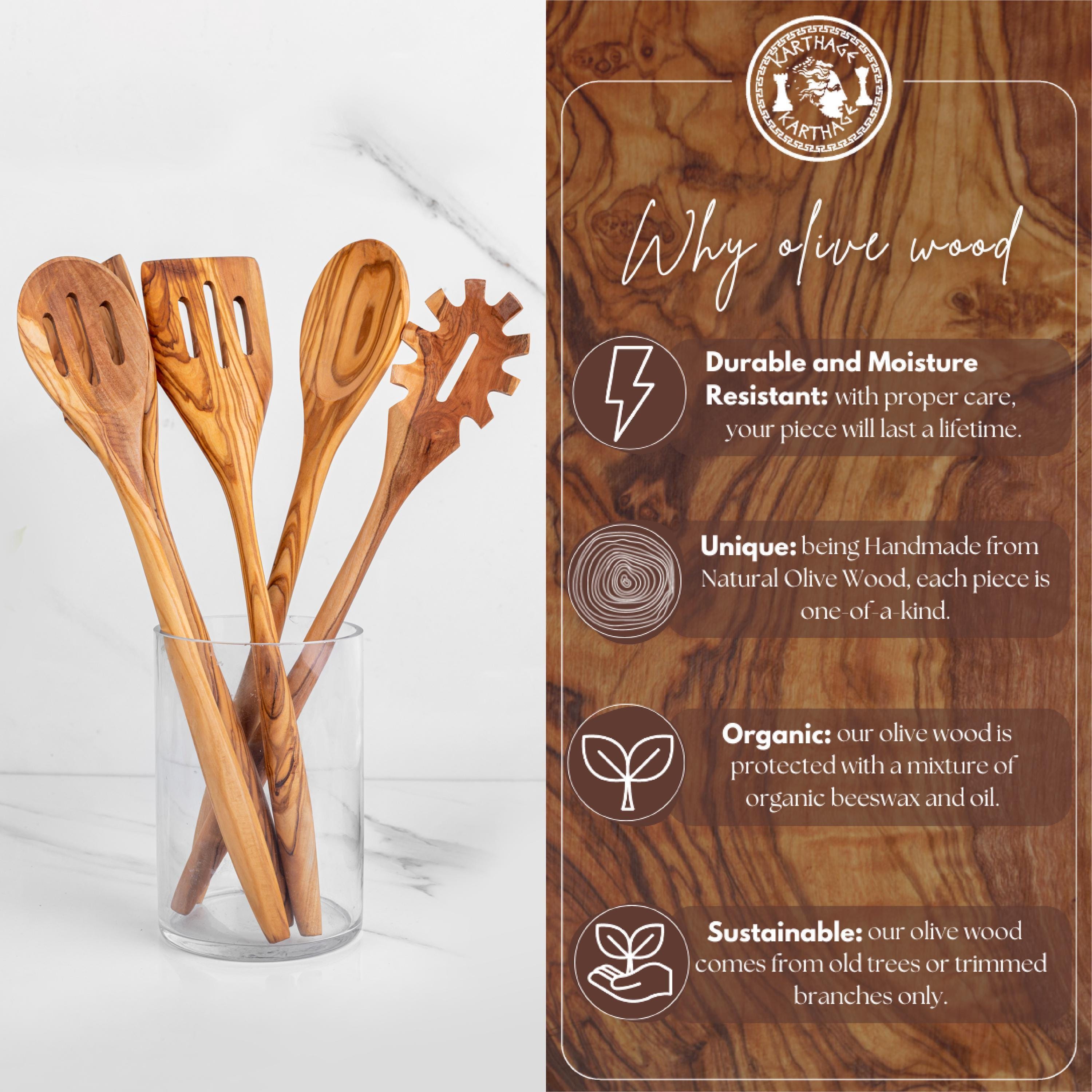 🌿 100% Natural Olive Wood: Our utensils are made from sustainably sourced, premium Tunisian olive wood.