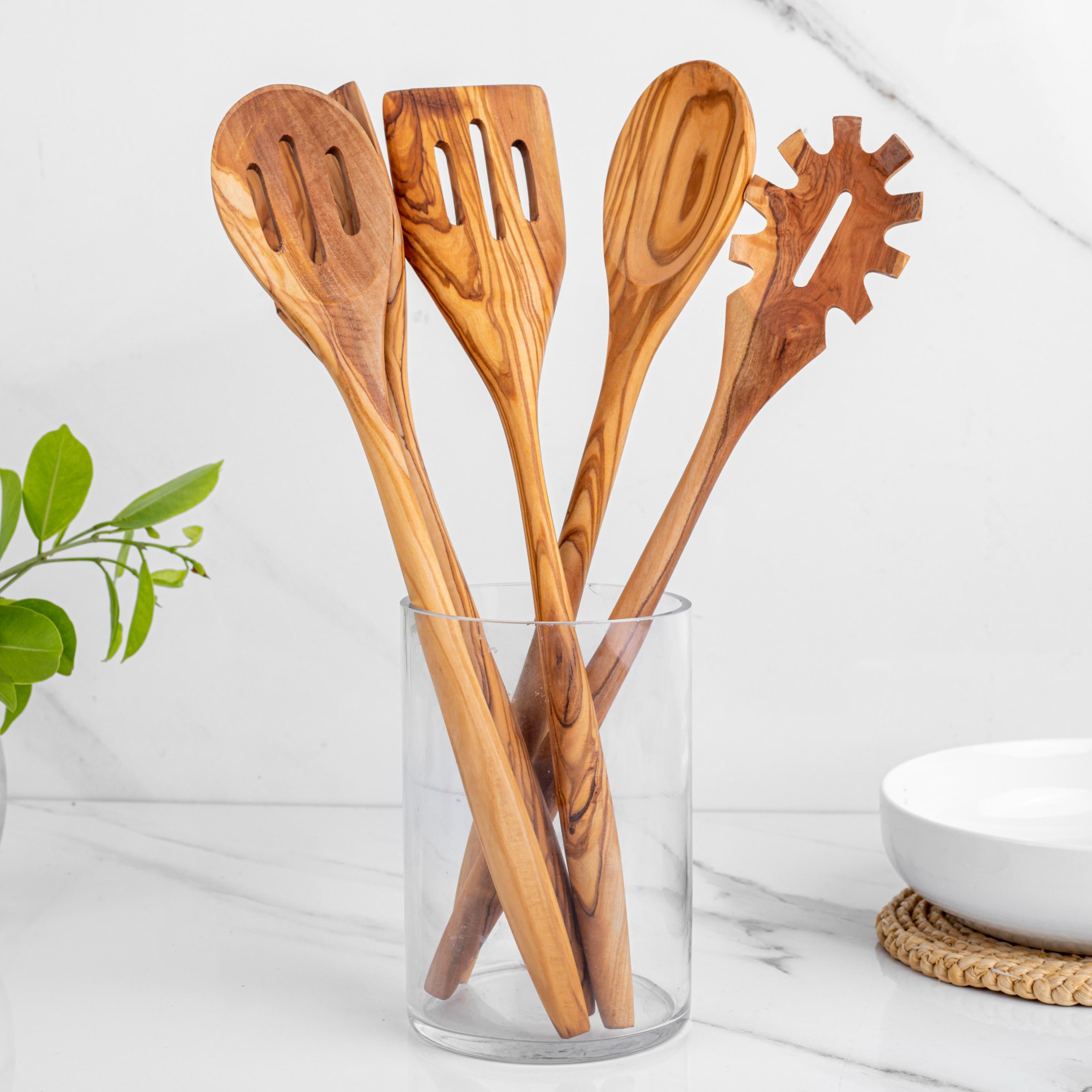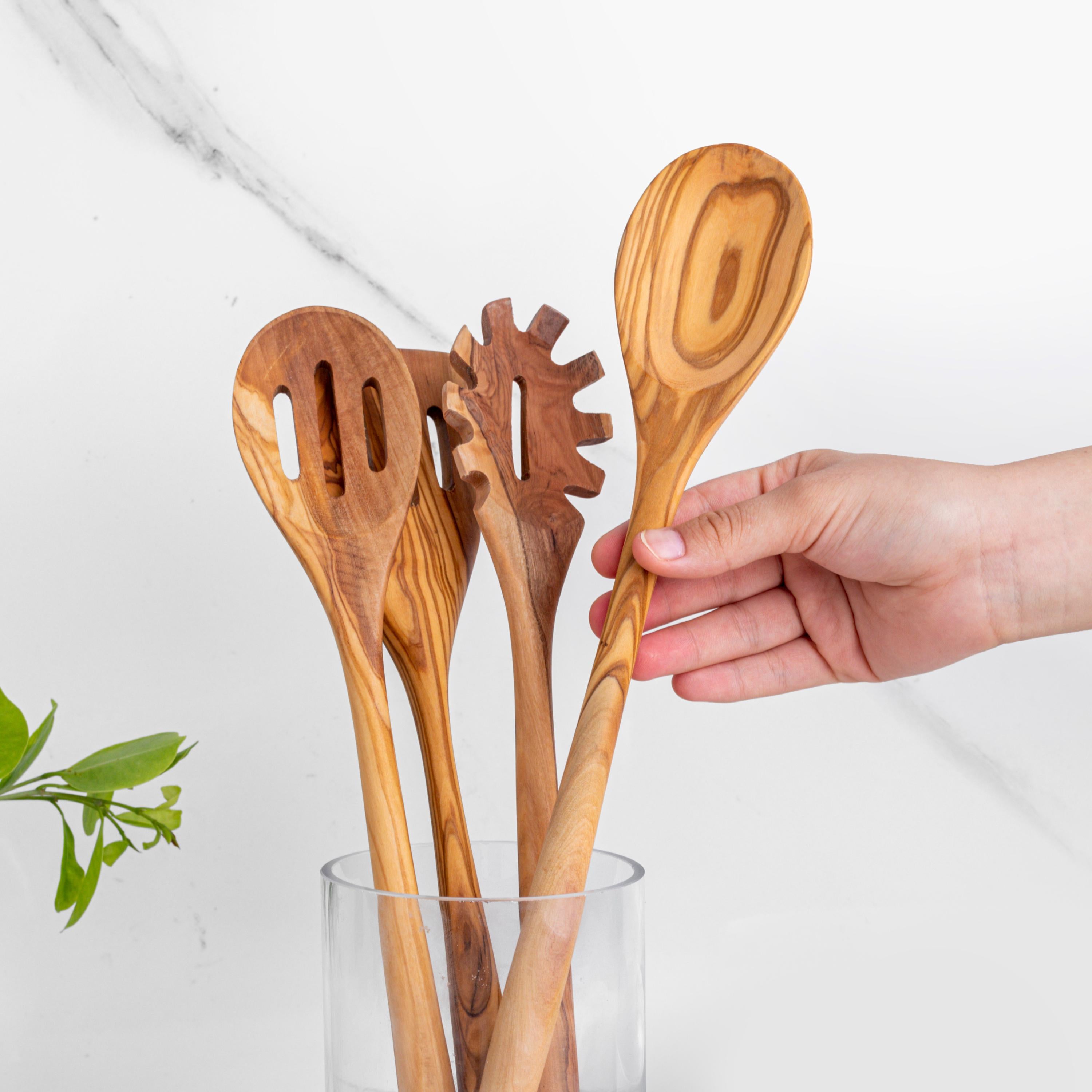 Handmade Olive Wood Utensil Set: 5 Wooden Kitchen Spoons & Spatulas